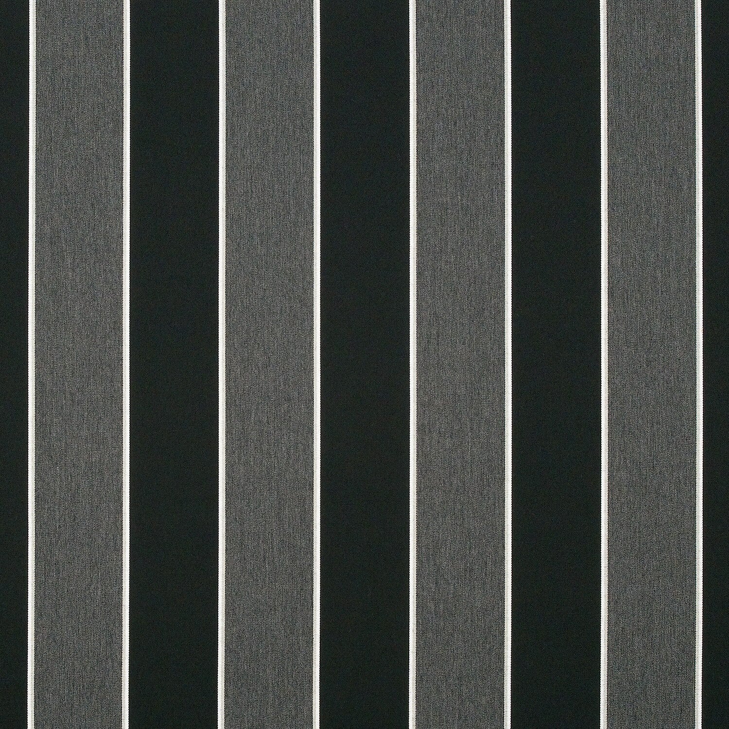 Sunbrella Peyton Granite (56075-0000) features a bold bar stripe pattern in black and blended charcoal with crisp white accent stripes for a timeless, tailored look. Crafted to maintain its beauty through years of use, this high-performance fabric resists stains, water, pilling, and abrasion. Perfect for cushions, upholstery, pillows, drapery, and marine applications, Peyton Granite delivers enduring style and durability for both indoor and outdoor settings.
